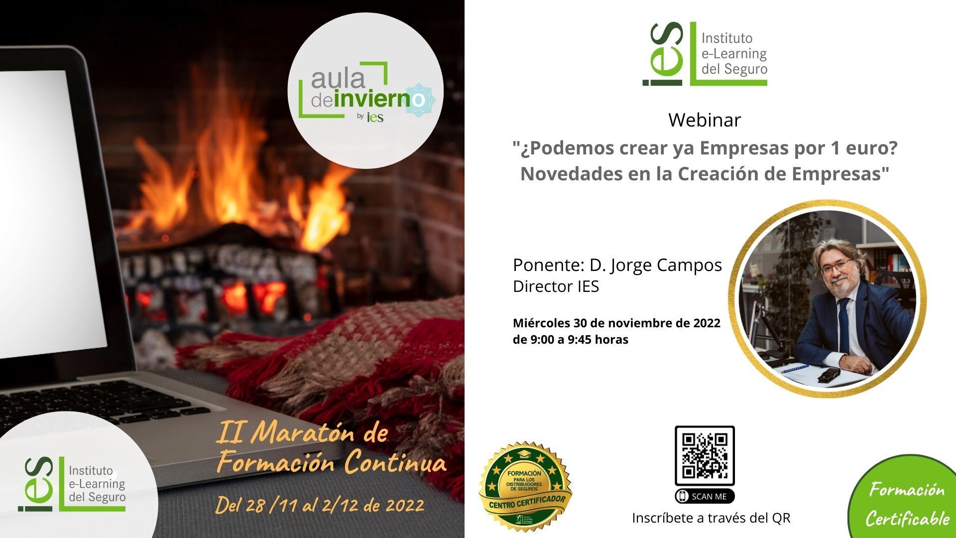 Para informar con detalle de todos los aspectos de esta nueva norma que afecta a todos los empresarios ya que, además de lo anterior, también recoge otras importantes novedades entre las que cabe destacar un nuevo régimen jurídico para las plataformas de financiación participativa (crowdfunding) y una nueva exigencia de la facturación electrónica entre empresarios y profesionales, el Instituto e-Learning del Seguro (IES) impartirá el próximo miércoles 30 de noviembre a las 09.00h un webinar formativo dentro del “Aula de Invierno” en el que su director, Jorge Campos, expondrá todos los detalles de esta nueva norma. Además, todos aquéllos que asistan a este webinar podrán certificarla a efectos del plan de formación continua como formación de gestión empresarial a través del IES. Se puede acceder al boletín de inscripción gratuito de esta jornada a través del este enlace: https://register.gotowebinar.com/register/3628279946999462927